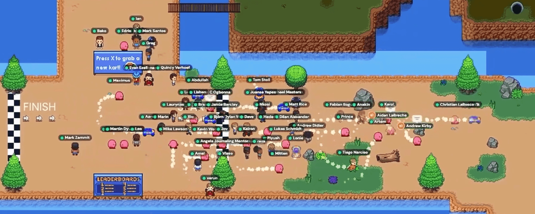 Our events take place inside an interactive virtual space (Gather Town) where attendees move freely, connect in small groups, explore sessions, and participate in real time. Instead of passively consuming content, they become active participants in the experience.